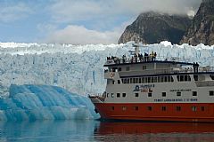 Chegada à noite nos encontraremos navegando pela Caleta Hualas ou Punta Leopardo, a 20 milhas da geleira San Rafael, uma incrível paisagem da Patagônia chilena.