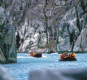 A bordo de nossa motonave navegaremos pelo canal Cockburn para desembarcar em botes zodiac que levar-nos-ão até o fiordo Alakalufe. Nele veremos formosas cascatas mas, definitivamente, o mais impressionante serão as vistas dos glaciares Piloto e Nena.