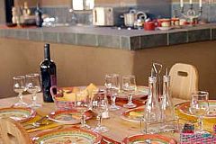 - A área de jantar integrada com a cozinha, oferecendo aos visitantes a oportunidade de observar ou participar na preparação dos alimentos
